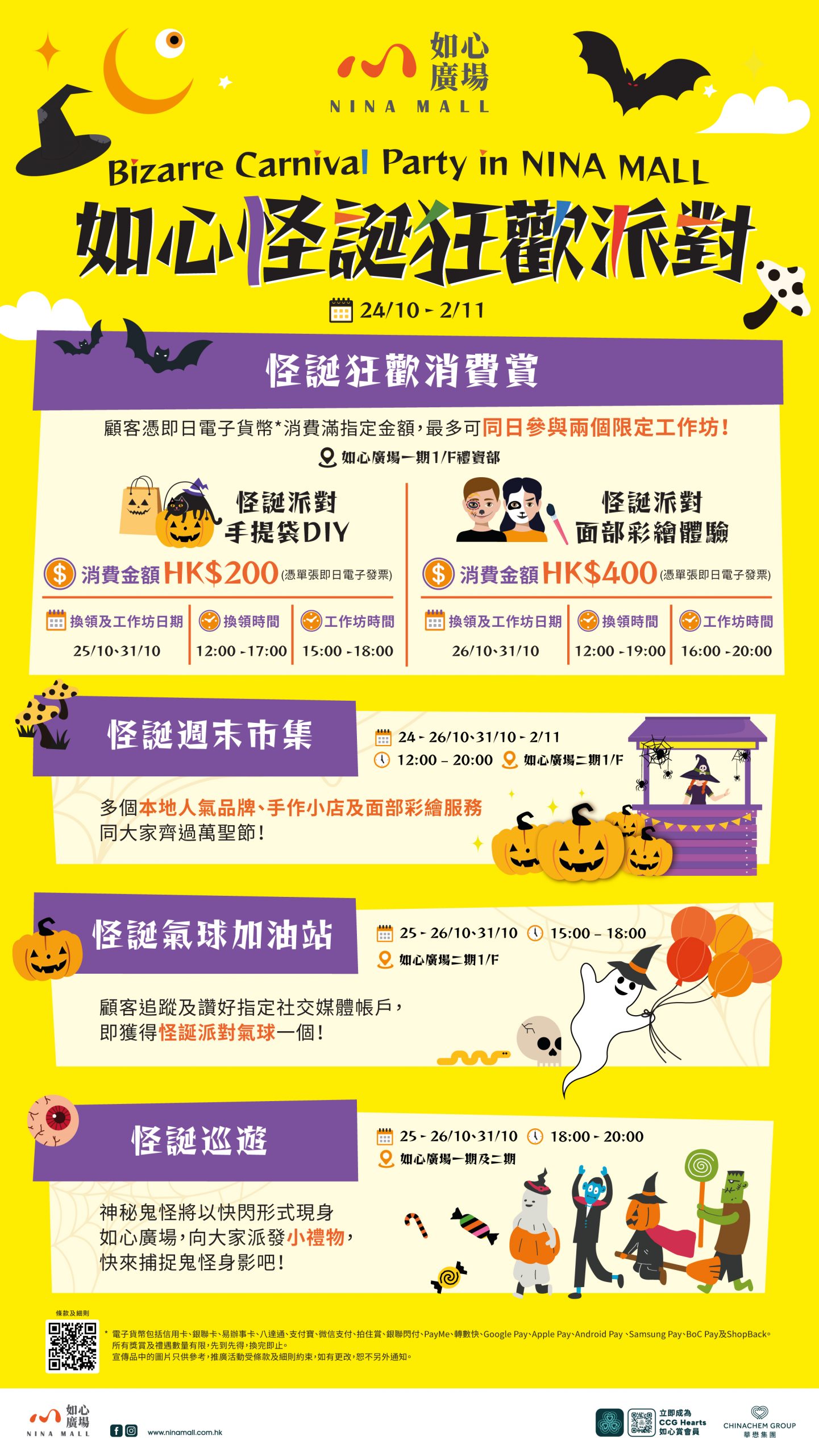 During Halloween campaign period, shoppers can redeem 2 workshops at the same day in NINA MALL! Don’t miss this opportunity to enjoy exclusive rewards!